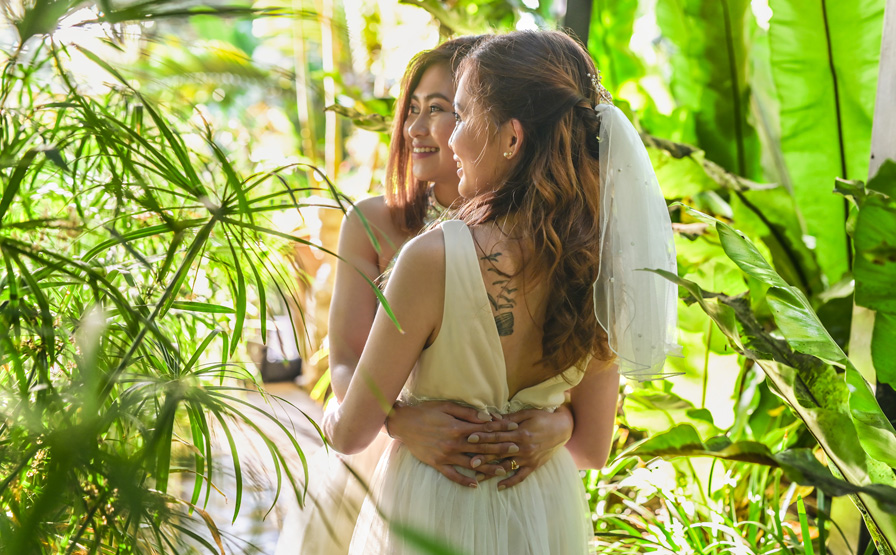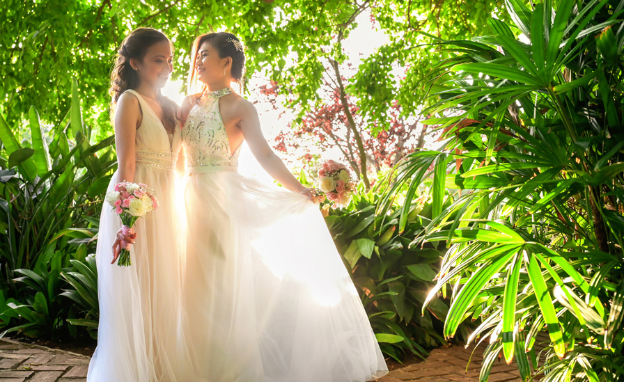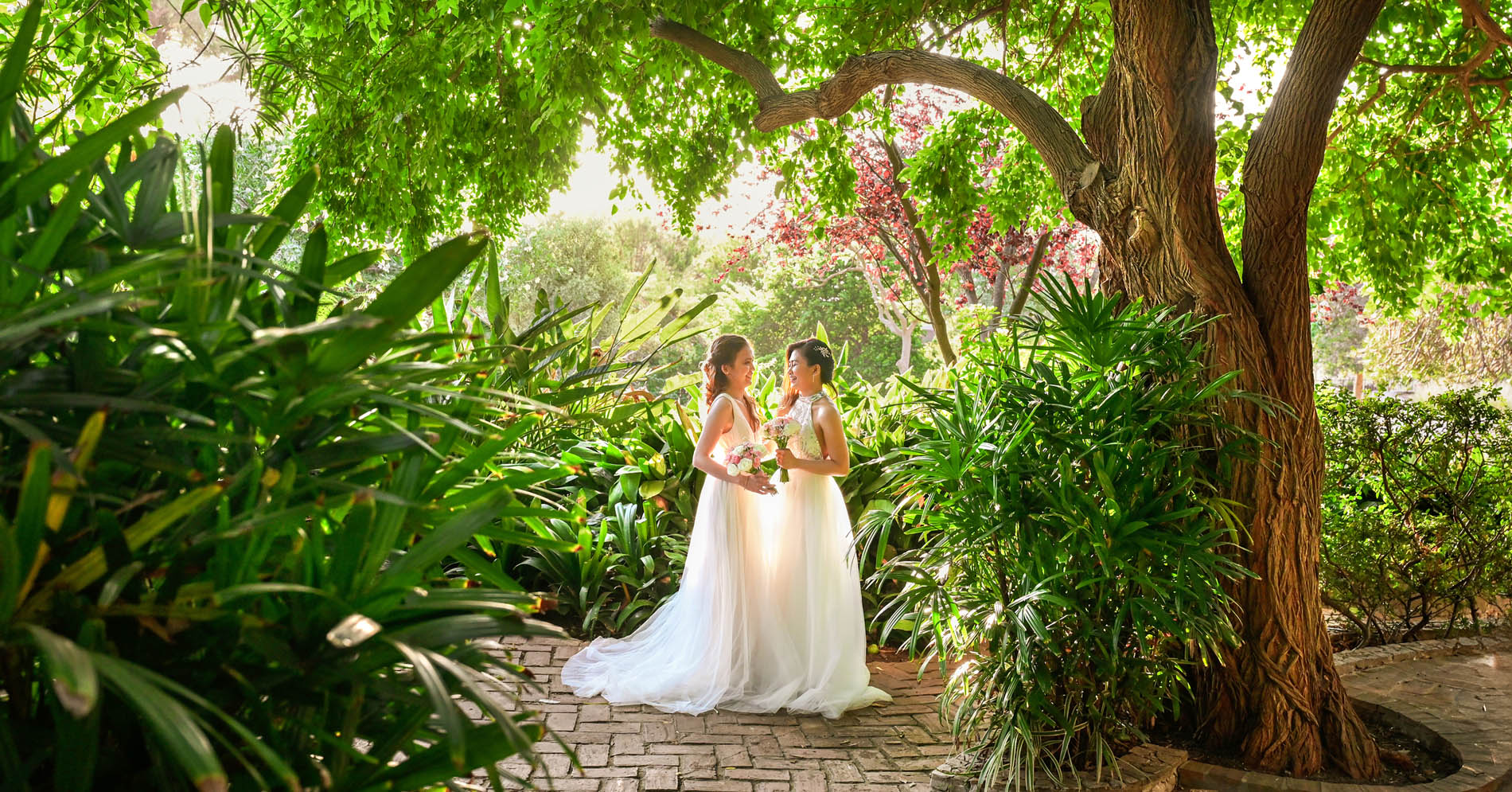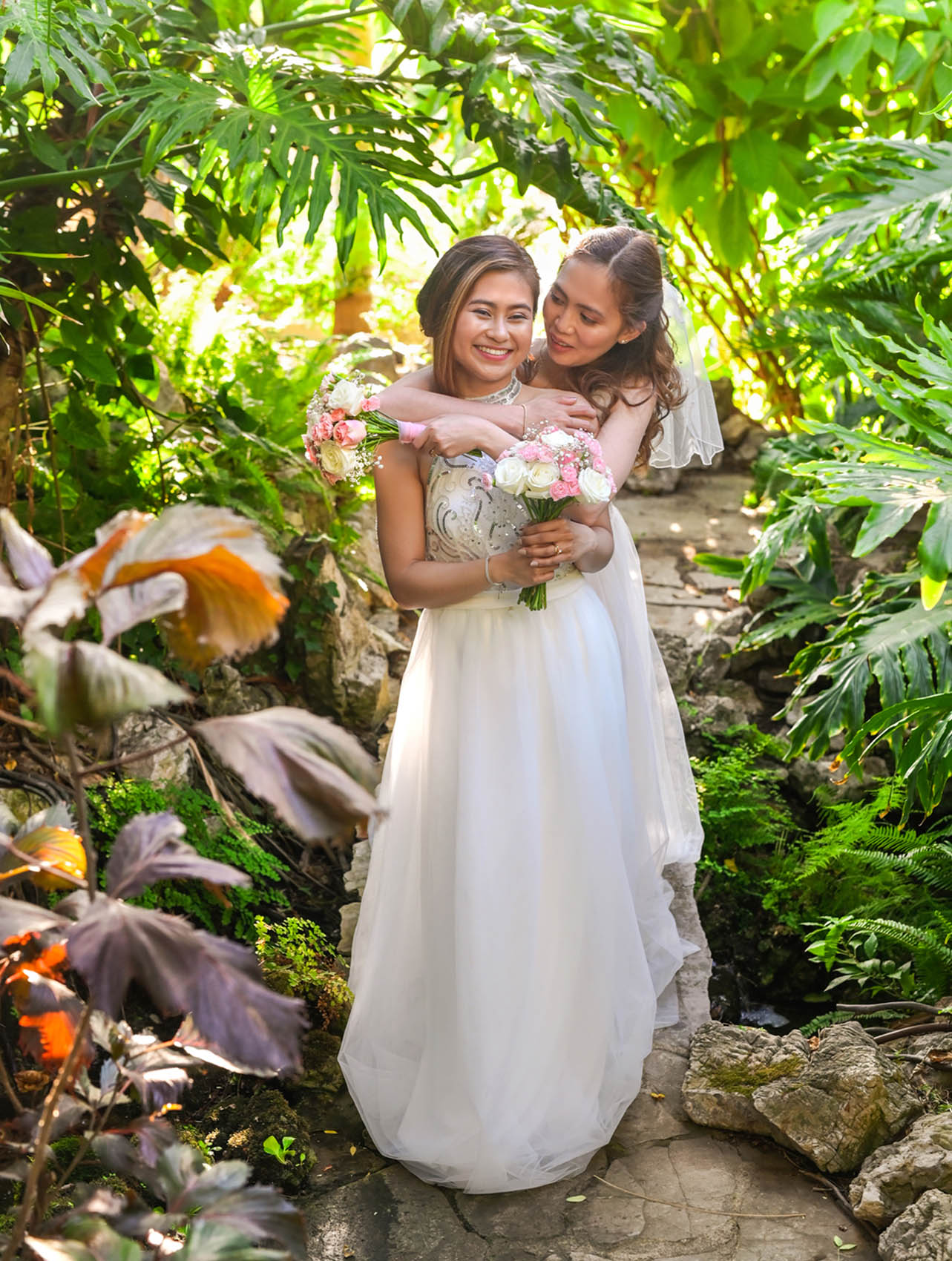 This was the wedding of Llisa & Monique a fabulous couple from Filipinas but residents in Ireland who wanted to celebrate in an intimate ceremony at botanical garden of Gibraltar in their most exclusive garden “the Dell”, as  wedding photographer we love to be able to attend same sex weddings of women or men who come to Gibraltar to seal their love.