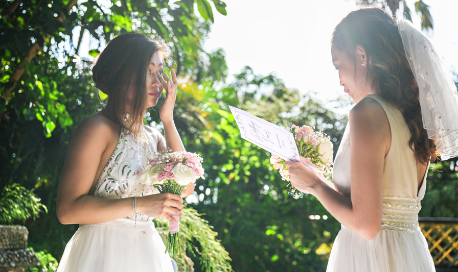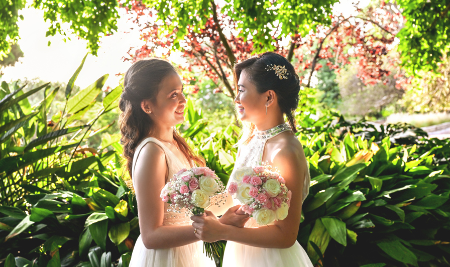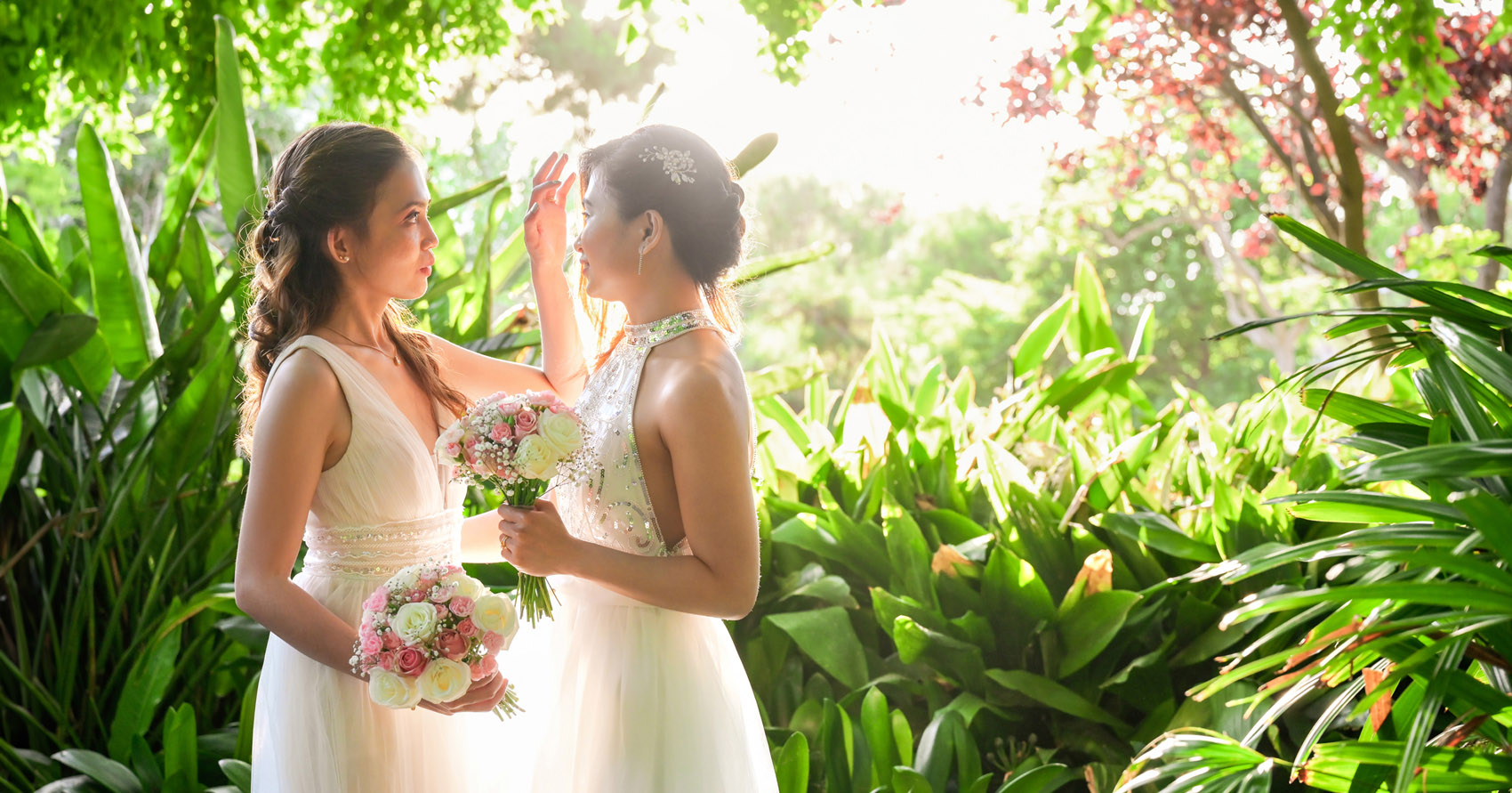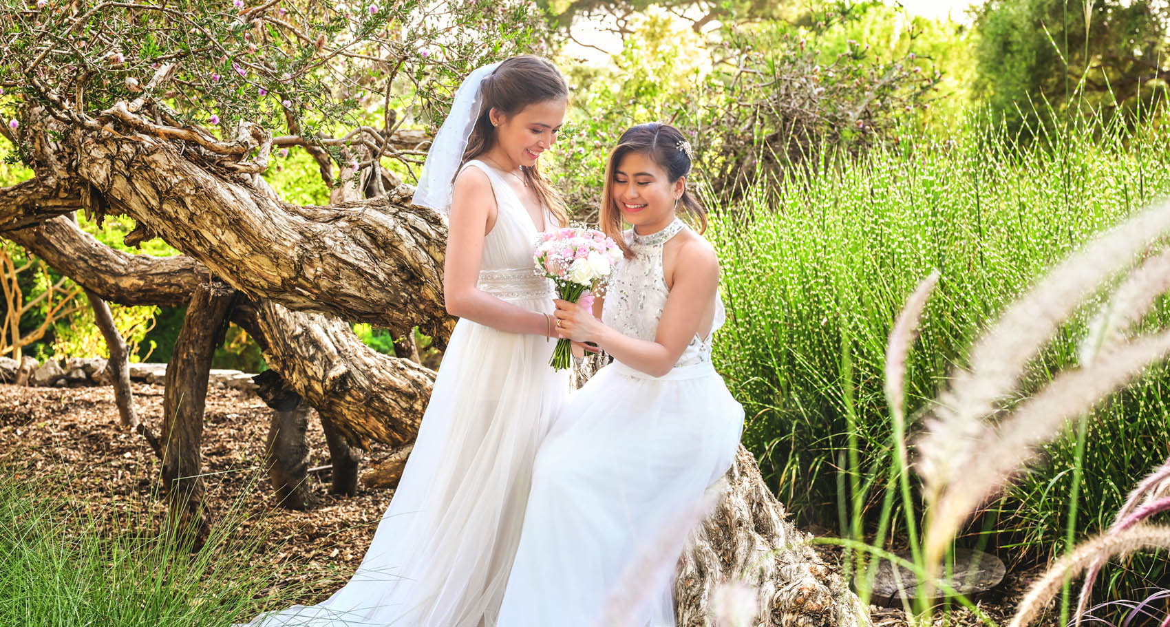 This was the wedding of Llisa & Monique a fabulous couple from Filipinas but residents in Ireland who wanted to celebrate in an intimate ceremony at botanical garden of Gibraltar in their most exclusive garden “the Dell”, as  wedding photographer we love to be able to attend same sex weddings of women or men who come to Gibraltar to seal their love.